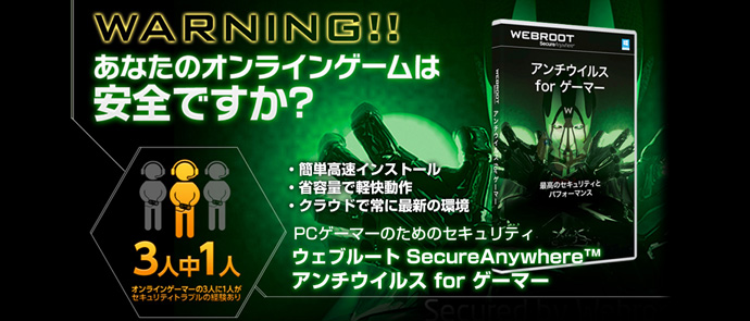 株式会社マイルストーンはこの度、業界初の「フルクラウド技術」を利用し、通常のアンチウイルスソフトと比べて大幅な省容量化・高速動作を実現したアンチウイルスソフト『ウェブルート セキュアエニウェア アンチウイルス』および、東京ゲームショーに出展し注目を集めたゲーマー向けアンチウイルスソフト『ウェブルート セキュアエニウェア アンチウイルス for ゲーマー』のダウンロード販売を行うオンラインストアをオープンいたしました。