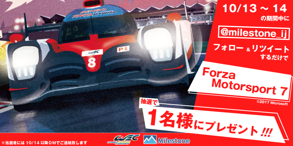 マイルストーン、「FIA 世界耐久選手権(WEC)富士6 時間耐久レース」への リアルレーシングシミュレーター体験ブースの出展を記念して 2つのプレゼントキャンペーンを実施!