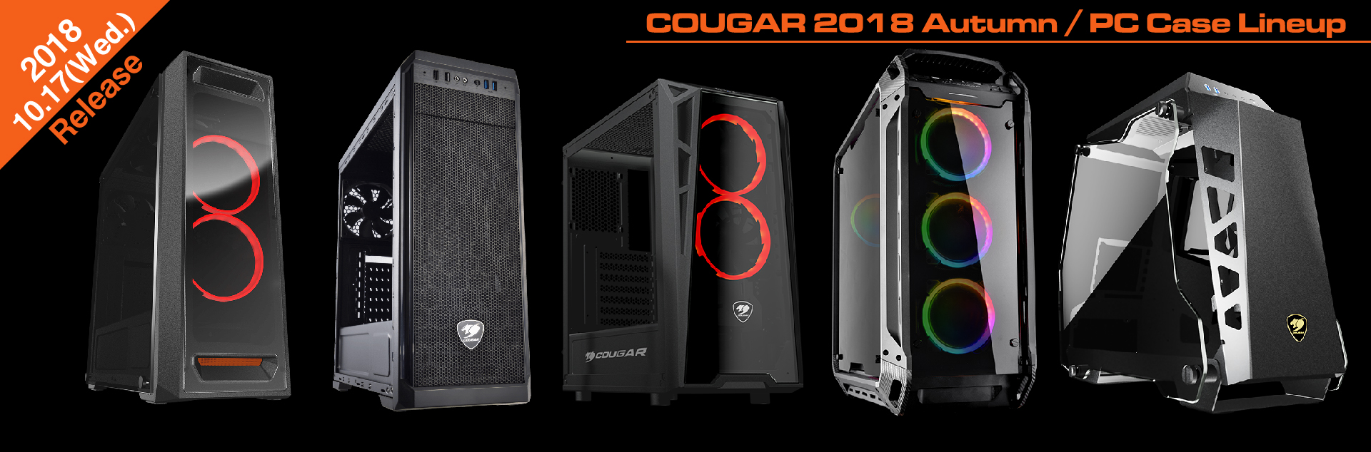 株式会社マイルストーンはこの度、ハイエンドPCパーツ&ゲーミングデバイスブランド「COUGAR」の新製品として、PCケース新製品5種『COUGAR MX350』『COUGAR MX330-G』『COUGAR PANZER EVO RGB』『COUGAR TURRET』『COUGAR CONQUER ESSENCE』の取り扱いを2018年10月17日(水)より開始いたしました。