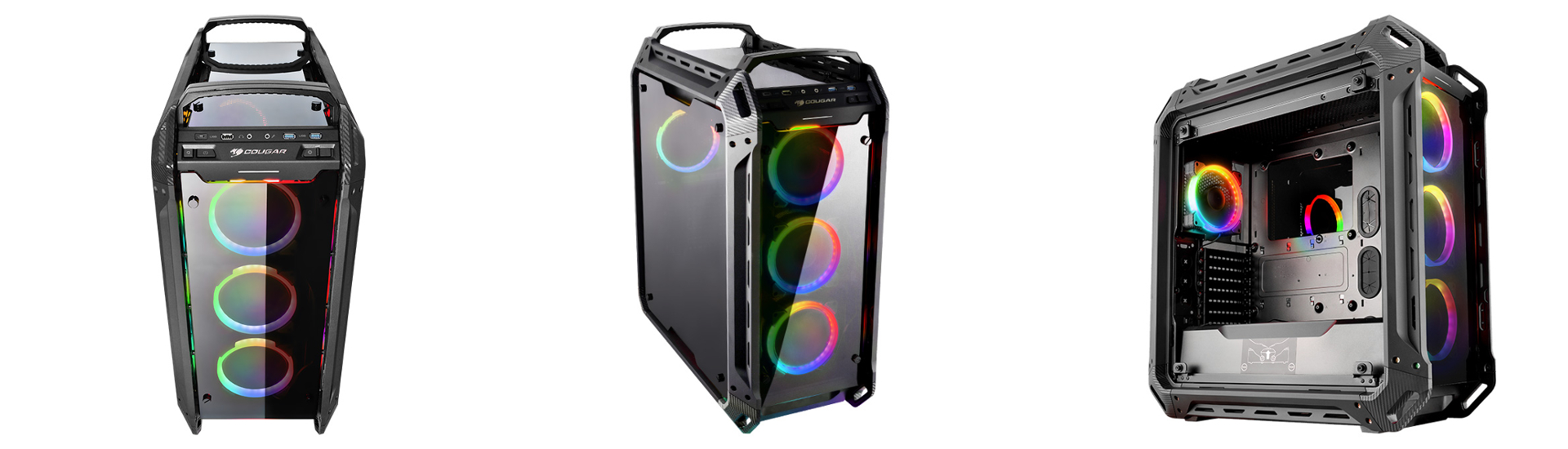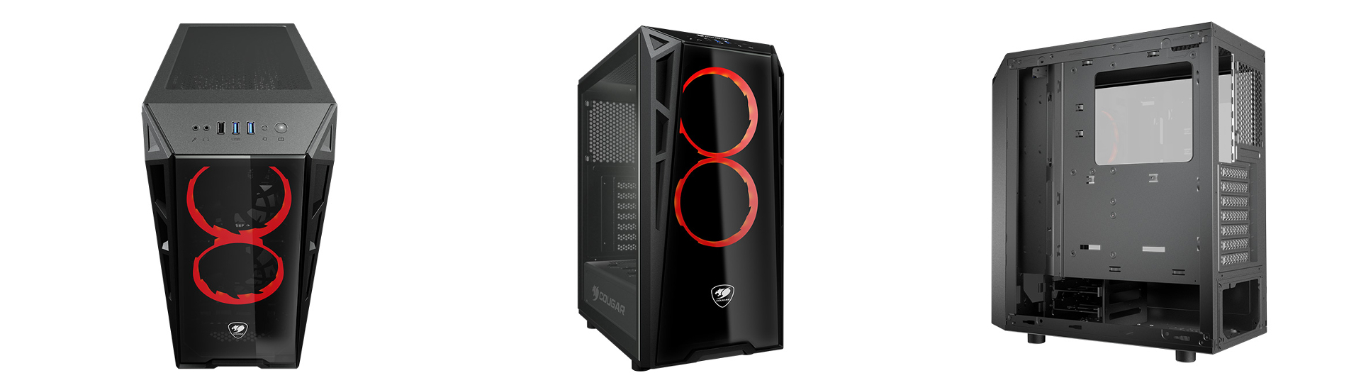 集中的な気流とCOUGARの新世代のライティングデザインを組み合わせた、美しく冷却力に優れた2つの120mm Vortex LEDファンがケースにプリインストールされています。