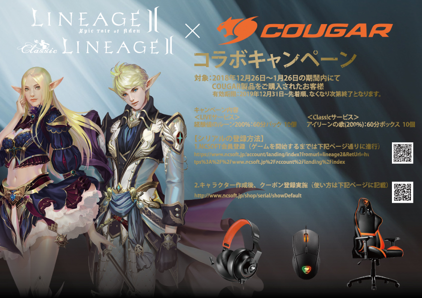 2018年12月26日~1月26日の期間内に対象店舗にてCOUGAR製品をご購入されたお客様