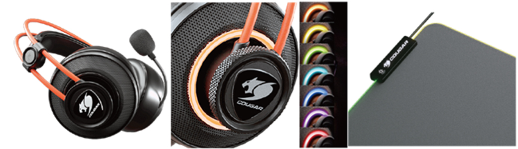 外付けのUSBサウンドカードを搭載しており、カスタマイズ可能な1,680万色対応LEDライト、360°の音源を的確にキャッチする7.1chバーチャルサラウンドに対応。COUGAR独自のCOUGAR UIXを使用することで好みのカラーを楽しめます。
