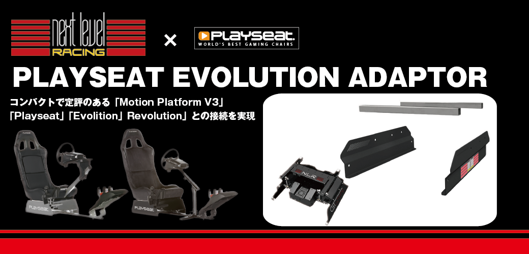 「Next Level Racing」より発売された、「Playseat Evolution Adaptor」は「Motion Platform V3」を「Playseat」の「Evolution」、「Revolution」との接続を可能にする画期的なアダプターです。