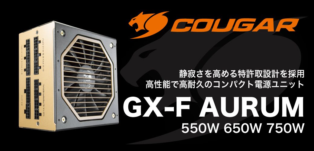 マイルストーン、COUGARの新製品 静寂さを高める特許取得設計を採用、高性能で高耐久のコンパクト電源ユニット 「GX-F AURUM」を4月22日(水)より取り扱い開始