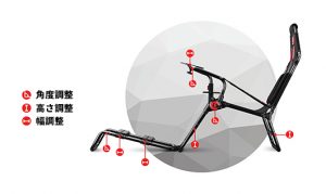 固定位置はユーザーの体格に合わせ、調整が出来るように加工されているため、ベストポジションを確保し集中して本格的なレースを楽しめます。