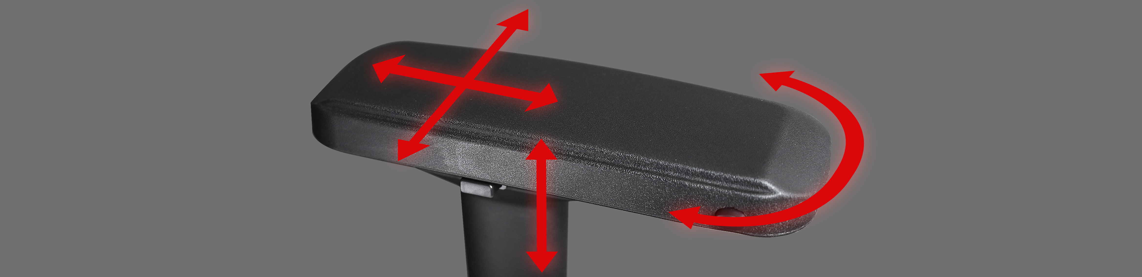 ・高さ、回転、前後、左右に稼働する 4D アームレスト