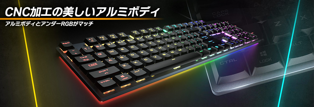ボディはCNCを使用した強化アルミニウム合金を使用することで高い耐久性を誇ります。優れた安定性とビジュアルを備えた高品質ゲーミングキーボードです。