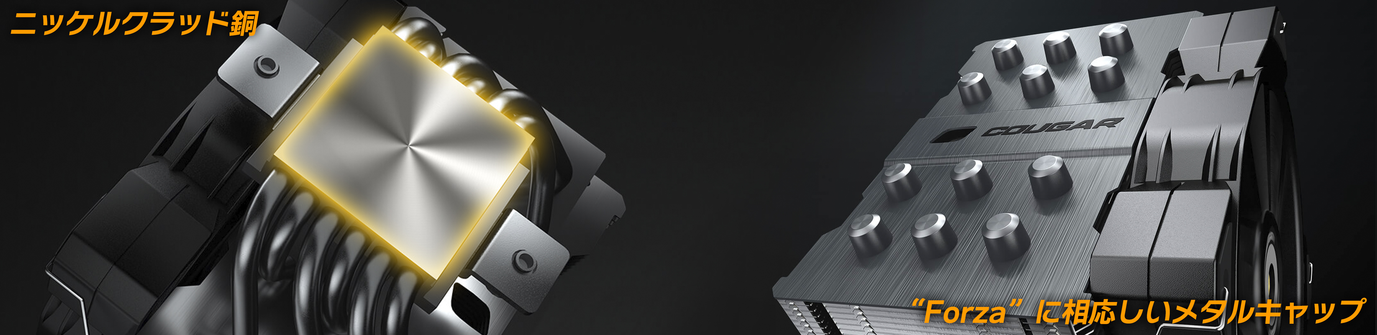 COUGAR Forza 85 はそのトップにメタルキャップ装飾を施し、Forzaにふさわしいメタルの質感をそのままにデザインされています。これらのキャップはCPUクーラー全体の美観を向上させるだけでなく、空気中の酸素と触れることで起こるヒートパイプの酸化を防ぐ役割を持ちます。