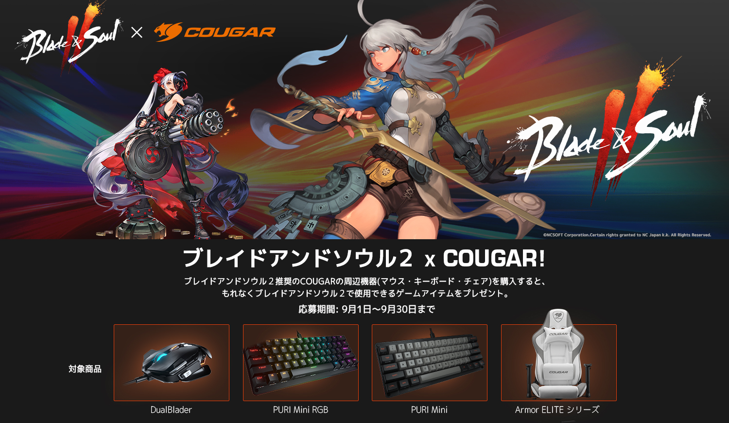 ブレイドアンドソウル2推奨周辺機器を購入してもらえる、「 ブレイドアンドソウル2 × COUGAR」