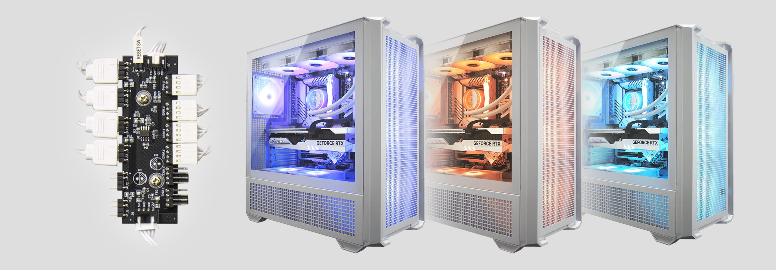MX600 RGBには、PWMファン速度とRGBライティングのシームレスな調整を可能にする統合型のユニバーサルファンハブが搭載されており、ソフトウェアを必要とせずにRGBライティングを制御したり、マザーボードのソフトウェアと同期させたりできます。