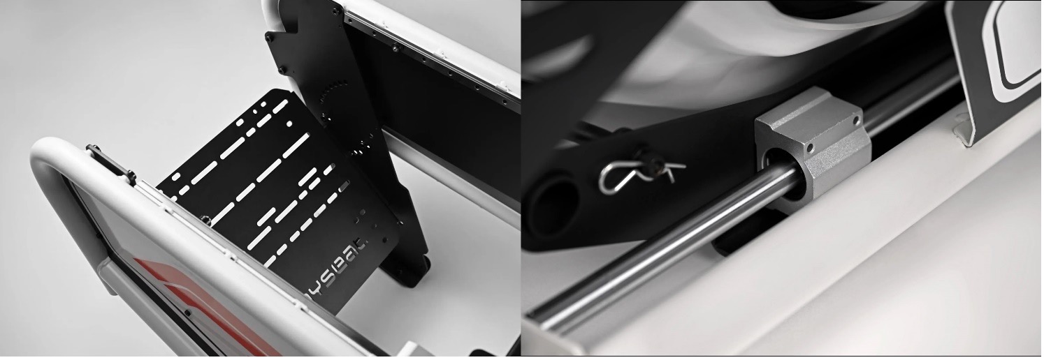 Playseat FORMULA INTELLIGENCE – F1 EDITIONには市販されているダイレクトドライブのホイールベースやペダルを取り付け可能で幅広いメーカーに対応できるようにネジ穴をあけております。 また、あらゆるユーザーの体格に対応できるようにホイールとペダルの角度は勿論のこと、特許取得済みの FORCELOCK™ 2.0 システムは、ホイールとシートのスライドをスムーズかつ無段階で調整を可能にします。