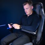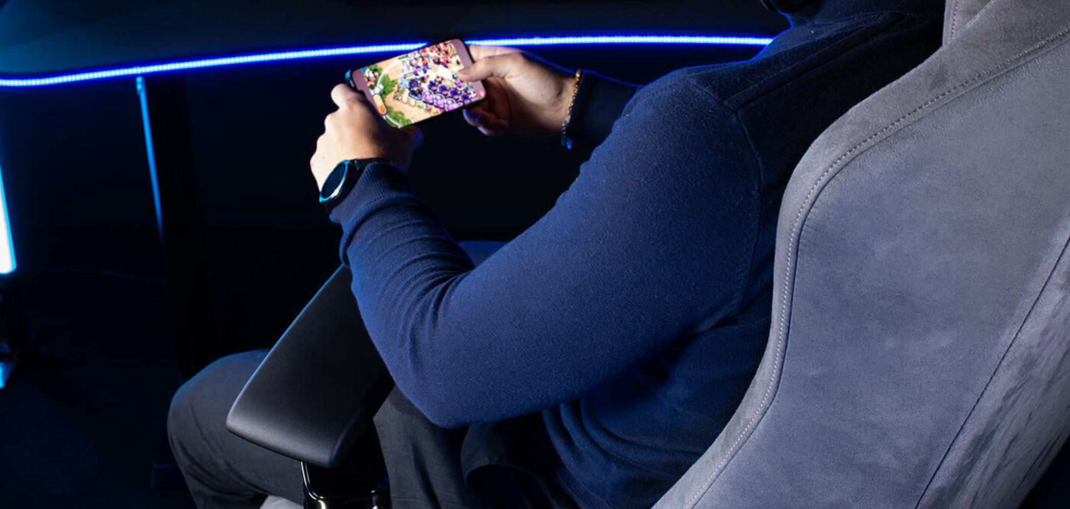 コンソールやスマホゲームの際は、アームレストを上向き・内向きに回転させて快適な姿勢に。肘のサポートを強化したい場合は後方に移動させ、デスクに近づきたいときは下向きに傾けることができます。