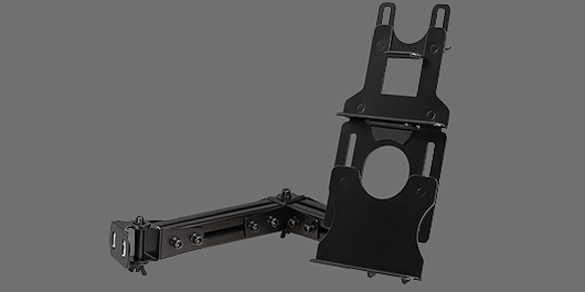タブレットやボタンボックスを最適な位置に取り付けできるようにデザイン・設計されています。3つの横方向の回転軸を備えており、移動や距離、角度の微調整も可能です。縦方向の回転軸は、ボタンボックスやタブレットを最適な位置で調整することができます。