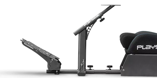 ステアリングを設置するステーは無段階の高さ調整が可能です。また、シートとペダルの距離は足元のステーで無段階調整が可能。身長、体格に合わせて最適なポジションに設定可能。
