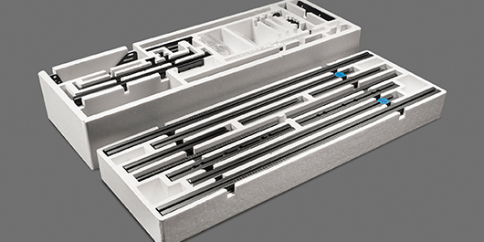 高度な製造技術を用いてアルミニウムプロファイルに精密加工された穴をあけることで、組み立てが簡単で、プロファイルをボルトで結合する際の剛性も改善されています。デザインの改善により、組み立ての容易さと、プロファイル上のレーザーエッチングされたラインマーキングを組み合わせることで、従来のどのアルミニウムのコックピットより早くレースへ参加ができます。各パーツは、輸送中の製品の安全性を確保し、包装が開封されてからのシームレスなユーザー体験を提供するために、カスタムフォーム包装に個別に入っています。