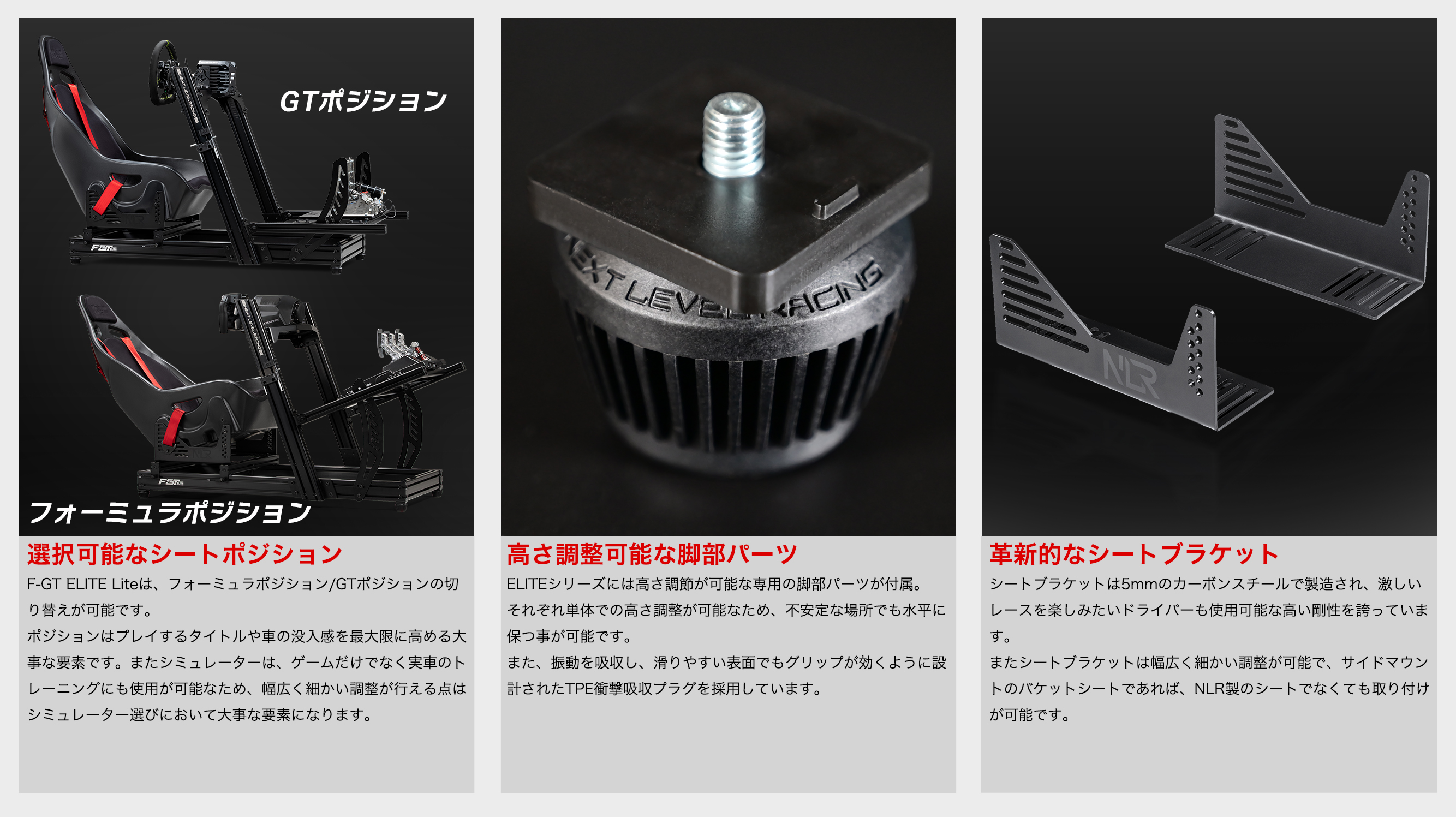 Next Level Racing®は2009年に創立され、世界をリードするシミュレーターブランドです。革新的な設計と技術で市場をリードし続けており、世界中の多くの国でさまざまな特許を取得しています。 Next Level Racing®の製品は、オーストラリア防衛軍、オーストラリア&英国空軍士官候補生、ブリストル大学航空宇宙工学科、RMIT大学、香港大学、ウルヴァーハンプトン大学、QUT大学などの専門教育をはじめ、Redbull RacingのMad Mike Whiddett、European Rallyのドライバー、Ricardo Costa Jnr、James Moon&Moreのヨーロッパパイロットなど、プロのレーシングドライバーやパイロットも使用しています。