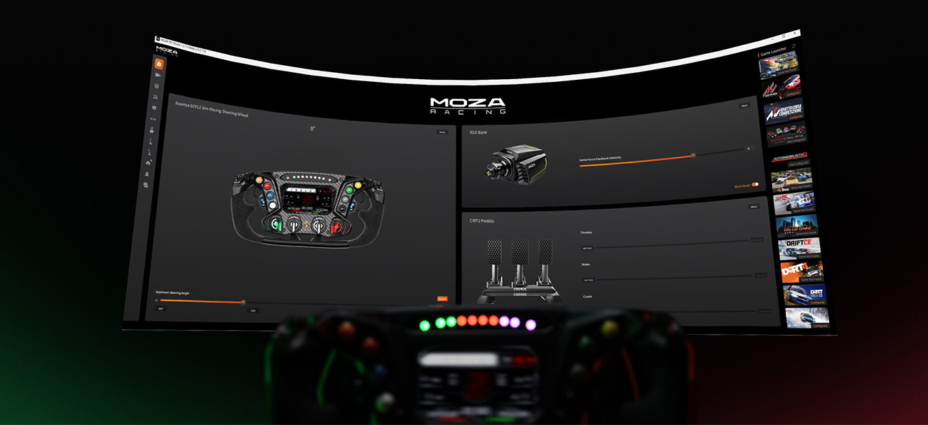 MOZA Pit House ソフトウェアは、ホイールの機能をテストし、設定を微調整できる直感的なインターフェイスを備えています。RPM LED の色、明るさ、タイミングをカスタマイズし、ダッシュ ディスプレイを完全に構成して、パーソナライズされたエクスペリエンスを実現できます。