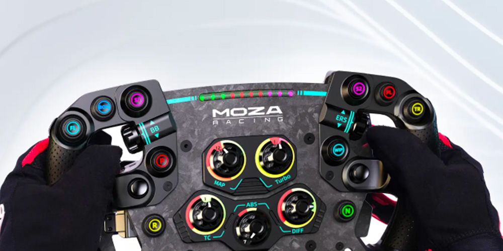 GS V2P は 10 個のプログラム可能なメカニカル キーを備えており、繊細で確かなクリック感によりあらゆる変化を確実に感じ取れます。キーは、MOZA Pit House アプリで 8 色の色から選択してカスタマイズすることもできます。