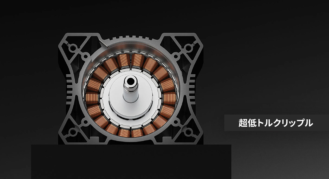 クラス最高の16 極のハイスロット設計を採用。超低トルクリップルと優れた衝撃吸収性能によるスムーズでシームレスなステアリング体験。最大トルク12Nmのダイレクトドライブ