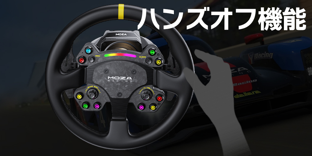MOZAの対応ステアリングであれば、ステアリングホイールとベースの間でデータと電力をワイヤレスで送信することが可能です。