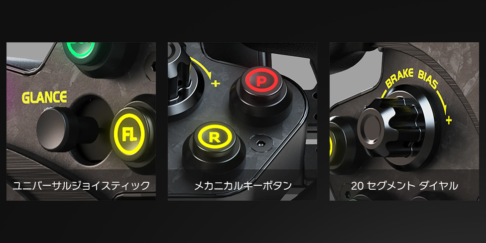本物のレーシングホイールと同じ寸法、ホイールプレートとシフターパドルは、ハイパーカーによく見られる鍛造カーボンファイバーを使用して製造されています。これらの多彩な機能と相まってリアルなレーシング体験を提供します。