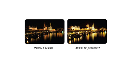 ASCRテクノロジーでは、映像信号をリアルタイムに解析および処理することで、液晶パネルの仕様を超える大変広い明暗差を表現することができます。明るい部分はより明るく、暗い部分はより暗く、メリハリのあるハッキリとした映像表現を行えます。