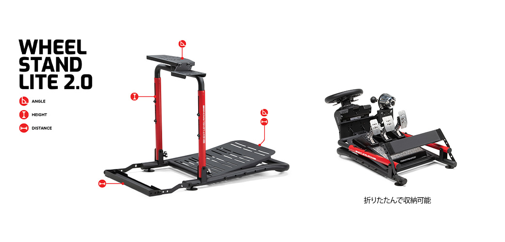 ※Next Level Racing® Wheel Stand Lite 2.0 Victory Seat Add-on を追加すると、フルコックピットにアップグレード可能