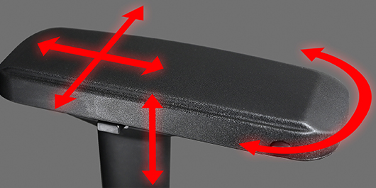 • 高さ、回転、前後、左右に稼働する 4D アームレスト