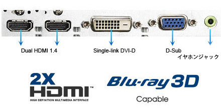 • HDMI 1.4×2、DVI-D×1、D-Sub 15ピン×1