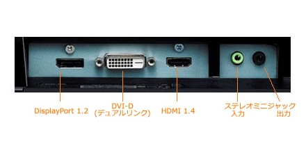 DisplayPort 1.2×1、HDMI 1.4×1、DVI-D(デュアルリンク)×1、ステレオミニジャック×1 |